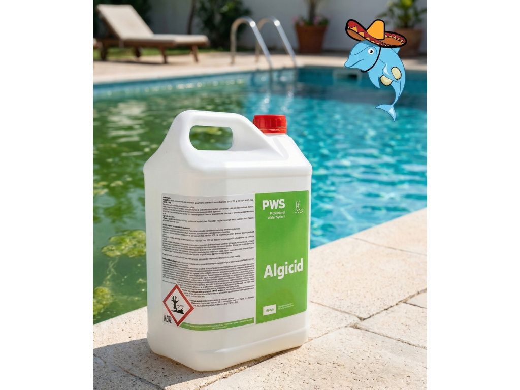 Algicid je speciální přípravek bazénové chemie, vhodný pro odstraňování nežádoucích zelených či hnědých řas z bazénové vody. Algicid lze použít i k preventivnímu ošetření bazénové vody. Při běžné prevenci je vhodné Algicid dávkovat v intervalu 7 až 14 dní. Výrazným způsobem intenzifikuje celý proces, který se snaží udržet bazénovou vodu průzračnou a nezávadnou. Algicid je možné kombinovat jak s kyslíkovou chemií, tak s přípravky chlorové chemie. Algicid ale není možné v koncentrované podobě míchat s žádným jiným přípravkem. Proto se doporučuje Algicid před samotným nadávkováním do Vašeho bazénu naředit ve vědru v menším množství vody a teprve poté vlít do bazénu tak, aby dávka Algicidu byla rovnoměrně rozprostřena po celé ploše hladiny bazénové vody. Při tomto správném dávkování již nemůže dojít k žádným nežádoucím reakcím. Při smíchání Algicidu a další látky z bazénové chemie v koncentrovaném stavu může dojít k naprosté deaktivaci Algicidu. Použitím Algicidu zvýšíte prokazatelně kvalitu bazénové vody a vrátíte jí viditelnou jiskru a průhlednost.
