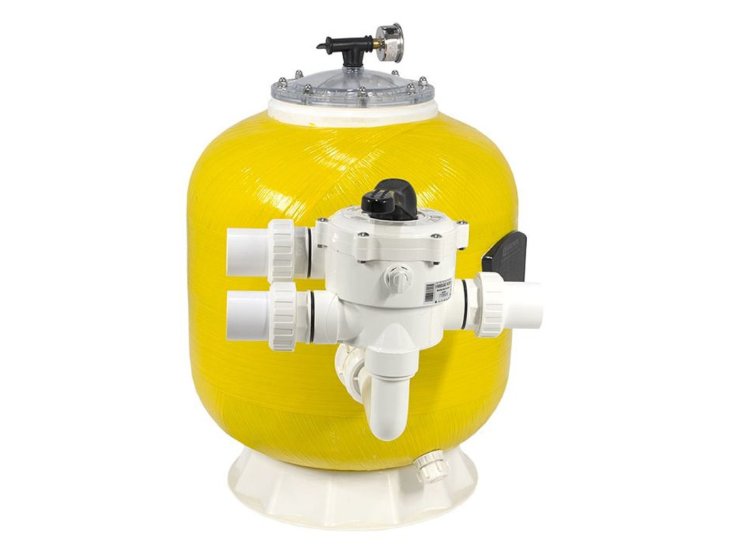 Jednotka bazénové pískové filtrace tvoří srdce bazénové technologie a pomáhá podstatnou měrou udržovat bazénovou vodu v požadované optimální kvalitě. Bazénová písková filtrace ATECPOOL SIDE GOLD s bočním umístěním šesticestného ventilu špičkové španělské značky plně splňuje veškeré provozní nároky středních a velkých domácích bazénů či hotelových nebo wellness provozů. Jednotku bazénové filtrace tvoří tlaková nádoba, vinutá ze sklolaminátové tkaniny, vnitřní rozvody, šesticestný ventil s robustní černou pákovou rukojetí a manometr s hydraulickou ochranou proti poškození případnými prudkými změnami tlaku ve filtračním loži.