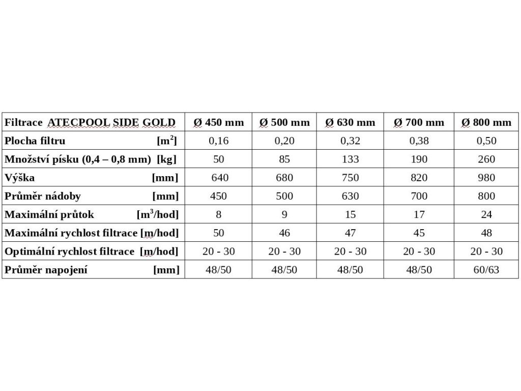 Bazénová písková filtrace ATECPOOL SIDE GOLD 700 mm