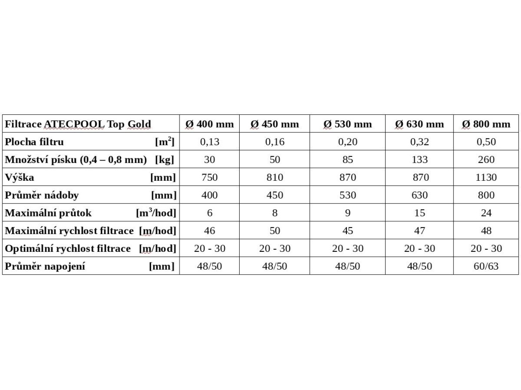 Bazénová písková filtrace ATECPOOL TOP GOLD 630 mm