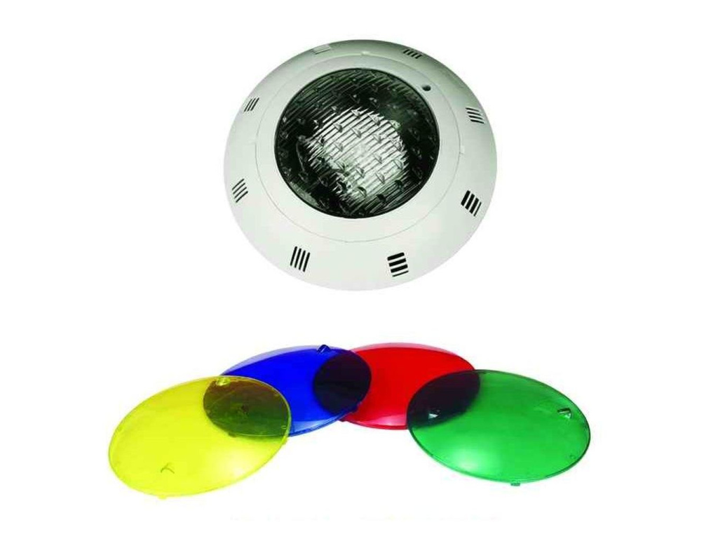 Ploché 100W halogenové světlo pro foliové, prefabrikované a betonové bazény včetně čtyř barevných clon (žlutá, modrá, červená, zelená) Plochý typ podhladinového halogenového světla 100 W / 12 V s přívodním kabelem o délce 3,4 m (2 x 1,5 mm2). Tělo i rám světla h200 je vyroben z bílého a odolného ABS plastu. Tento typ je určen primárně pro foliové bazény, prefabrikované bazény (Polypropylenové, Laminátové) nebo pro betonové bazény. Nejdříve montujeme kotvící segment na stěnu bazénu, následně na něj instalujeme vlastní bazénové světlo. Součástí dodávky jsou i čtyři barevné krytky pro Vaši bazénovou pohodu během nočního koupání. Krytky – clony jsou ve žluté, modré, červené a zelené barvě. Původní halogenový zářič vytváří čisté a jasné prosvětlení Vašeho bazénu.