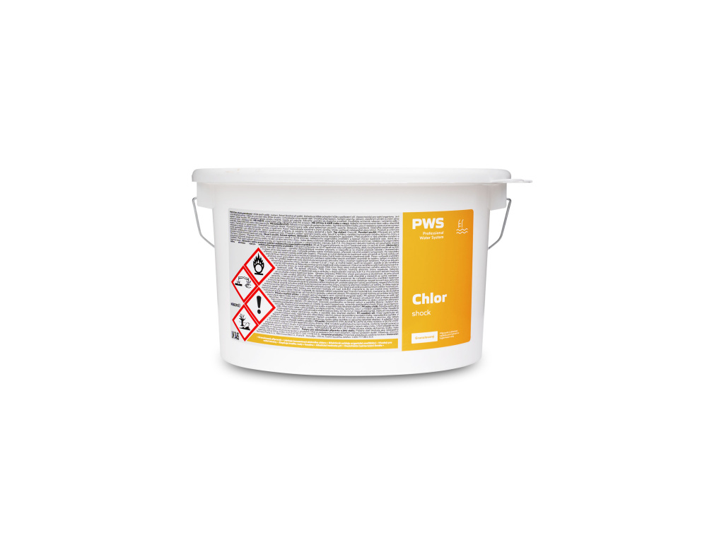 Chlor šok (Chlorový granulát organický) je určený pro šokovou chloraci. Neobsahuje žádný vápník či hořčík, který by mohl zvýšit tvrdost vody. Dobře stabilizuje chlor v bazénové vodě. Aplikace přípravku je nejsnazší přes pískový filtr, kde se granulát rychle rozpustí. Dávkování pro šokovou chloraci je 10 g na 1000l, běžné dávky pro údržbu se pohybují v intervalu 40 až 70 g na 10.000l jednou za 5 až 10 dní.