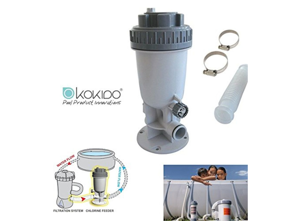 Dávkovač bazénových chlorových tablet KlorIn™ umožňuje revoluční a bezpečný automatický způsob dávkování chlorových bazénových tablet, ať už jednosložkových či multifunkčních, a pohodlnou údržbu bazénové vody ve vašem domácím bazénu. Dávkovač KlorIn™ je vhodný jak pro standardní bazénové tablety ve velikosti Maxi (tablety o hmotnosti 200 g), tak i pro pro tablety Mini (tablety o hmotnosti 20 g). Je možné jej také bez problémů použít i pro dávkování Mini tablet na bázi aktivního bromu ve vířivkách či whirlpoolech.