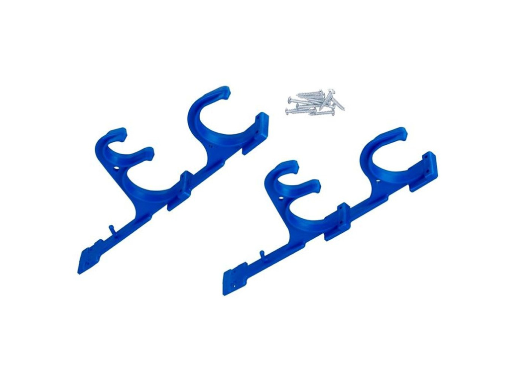 Nástěnný závěsný plastový držák je velkým pomocníkem pro zimní uložení bazénových hadic a teleskopické tyče, aby nedošlo k jejich poškození mimo koupací sezónu. Přiložené šrouby s plochou drážkou jsou určeny k jeho upevnění do dřevěné stěny, pokud byste jej chtěli připevnit na zděnou stěnu, je třeba použít hmoždinky a vhodné šrouby do zdi (nejsou součástí balení). Vzdálenost obou dílů držáku na zeď či stěnu je individuální a záleží na konkrétní potřebě uložení výše uvedeného bazénového příslušenství. Jednotlivé prolisy držáku umožňují uložení dvou bazénových hadic v řadě nad sebou a jedné teleskopické tyče.