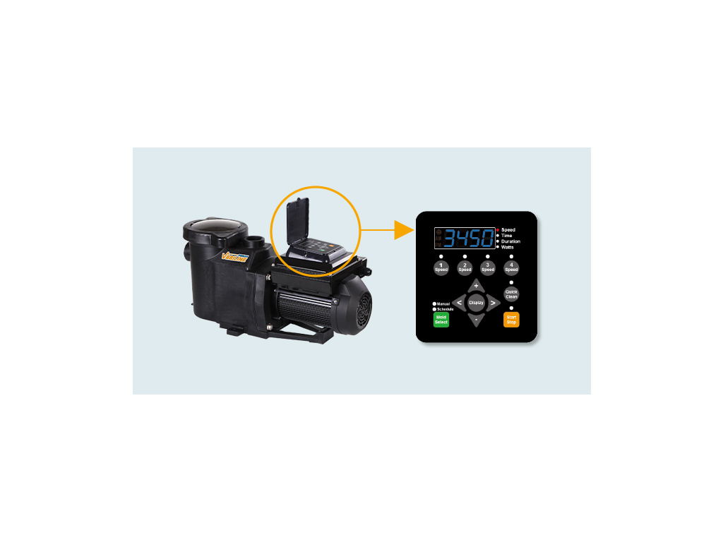 Filtrační čerpadlo Variline pracuje se 4 programovatelnými rychlostmi, které přizpůsobují průtok filtrace v závislosti na ročním období a využití vašeho bazénu: mimo špičku, při intenzivním používání, po šokovém čištění nebo pro zpětný proplach. Program se nastavuje jednoduchým stisknutím tlačítka na ovládacím panelu, aby bylo používání tohoto filtračního čerpadla pro bazén intuitivnější.