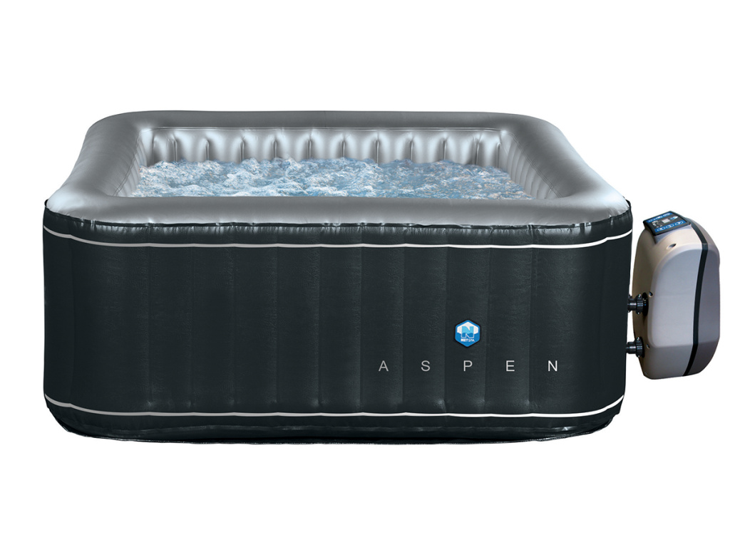 Mobilní nafukovací vířivá vana Aspen má elegantní čtvercový tvar a je ideální pro 4 osoby. Je vyrobena z odolného materiálu a vnitřek vířivky je perleťový. Vířivka je dodávána s chytrým, ekonomickým motorem, který zajišťuje ohřev, masáž a filtraci.