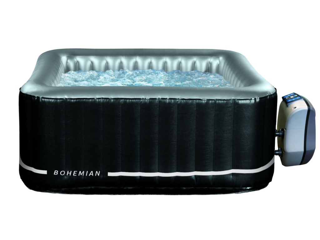 Tato vířivka se vejde do malých prostor a nabízí perličkovou koupel pro 2 dospělé osoby a 2 děti. Má čtvercový tvar, stříbrný vnitřek a vnější povrch v černé barvě.
