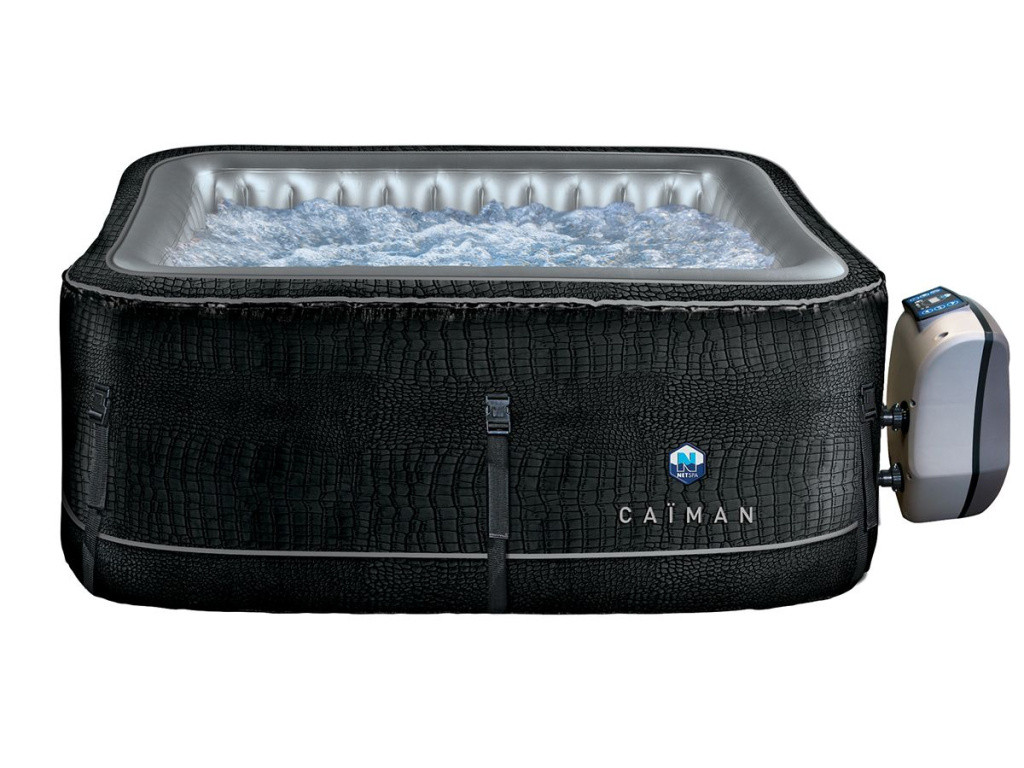 Tato čtverhranná vířivá vana Caiman je ideální pro 4 osoby. Má hospodárnou motorovou jednotku, která zajišťuje ohřev vody, filtraci i masáž vzduchovými bublinkami.