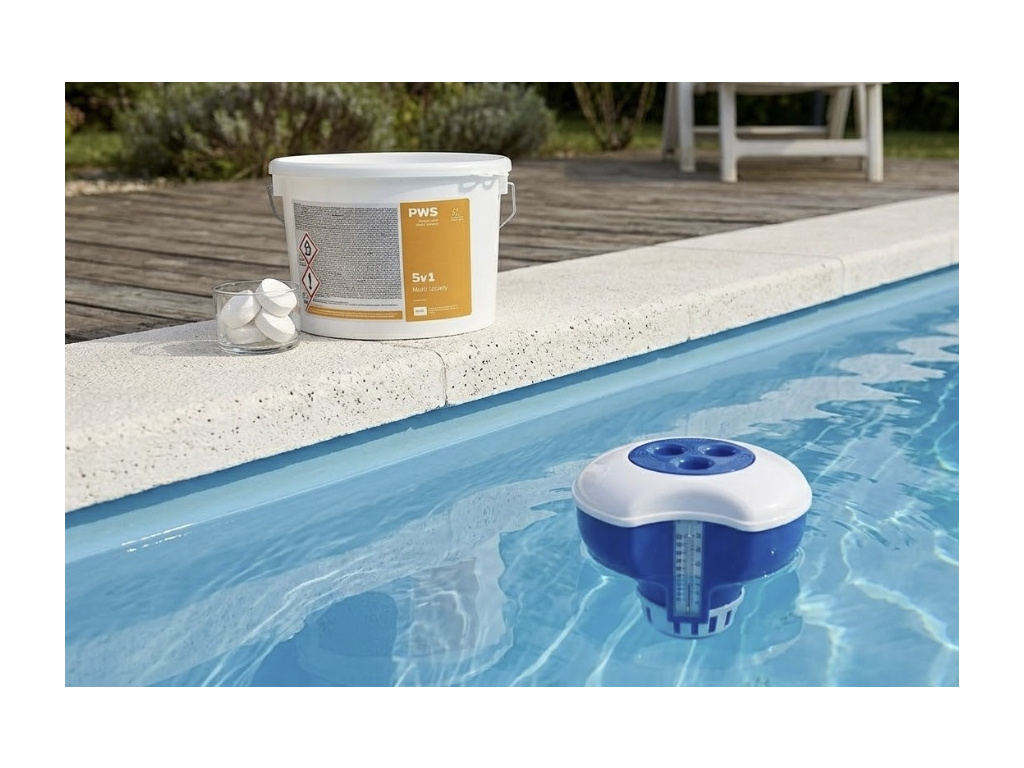 - Odstraní nežádoucí nečistoty z bazénové vody - Multifunkční tableta do bazénu 5v1 do bazénu obsahuje přípravek, který Vás zbaví problémů se zákalem bazénové vody. Obdobný přípravek bazénové chemie můžete zakoupit samostatně v koncentrované podobě pod názvem Vločkovač do bazénu. Naše tablety do bazénu Vás však zbavují starostí o bazénovou vodu tím, že tento přípravek již obsahují a Vy jej následně nemusíte dávkovat.
