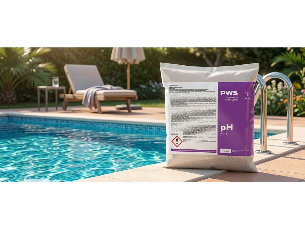 Přípravek pH plus – granulát je určen ke zvýšení hodnoty pH bazénové vody. Jedná se o přípravek bazénové chemie, který napomáhá regulovat jeden z nejdůležitějších parametrů při údržbě a úpravě bazénové vody – hodnotu pH. Sama hodnota pH řídí téměř veškeré děje, probíhající ve vodách. Přípravek pH plus – granulát využijete v případě, že hodnota pH bazénové vody je nižší než 6,8. pH plus – granulát hodnotu pH účinně zvýší. Jak název přípravku napovídá, jedná se o granulovaný produkt, tedy vysoce bezpečný z hlediska manipulace, kdy nehrozí téměř žádné riziko neopatrného poleptání či potřísnění. Nevýhodou pH plus – granulátu je nutnost před vlastní aplikací tento přípravek rozpustit a dávkovat jej ve formě zředěného roztoku.