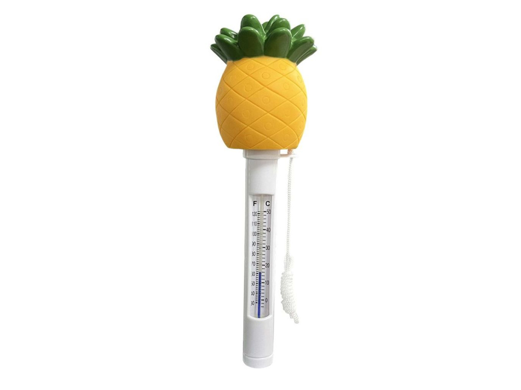 Praktický plovoucí odolný teploměr pro měření teploty bazénové vody. Díky plastového plováku teploměr v bazénu vždy na hladině spolehlivě najdete. Pomocí provázku z umělého vlákna teploměr v bazénu spolehlivě upevníte. Dobře čitelná teplotní stupnice se skleněnou trubičkou s kontrastní kapalinou uprostřed.