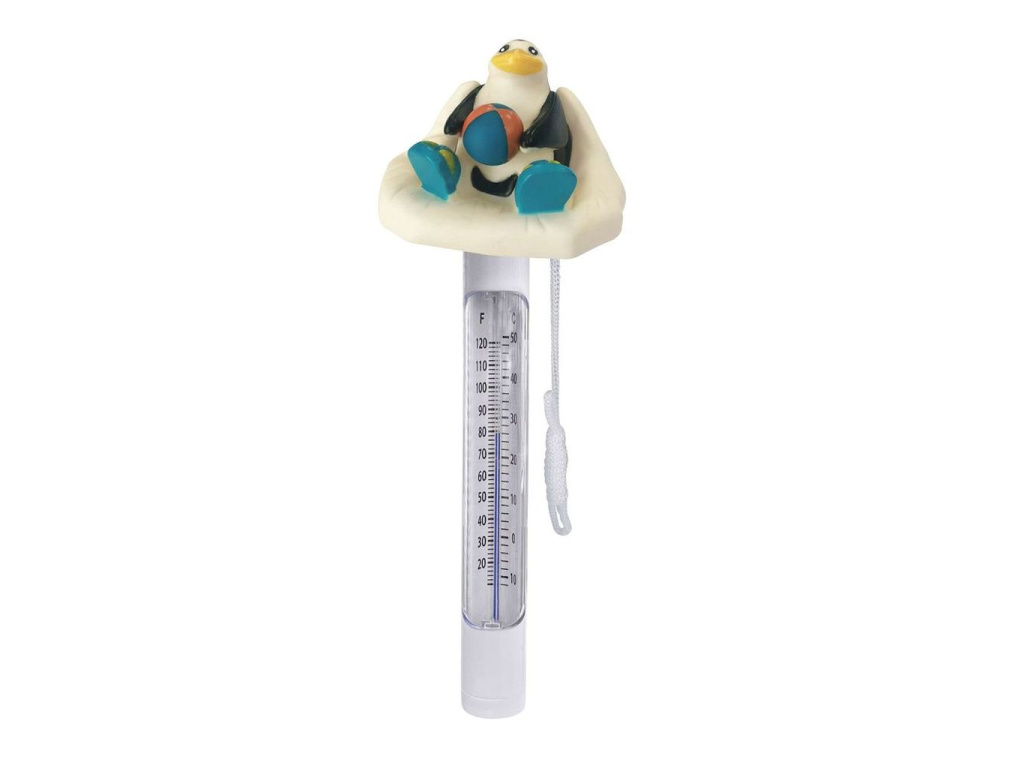 Praktický plovoucí odolný teploměr pro měření teploty bazénové vody. Díky plastového plováku teploměr v bazénu vždy na hladině spolehlivě najdete. Pomocí provázku z umělého vlákna teploměr v bazénu spolehlivě upevníte. Dobře čitelná teplotní stupnice se skleněnou trubičkou s kontrastní kapalinou uprostřed.