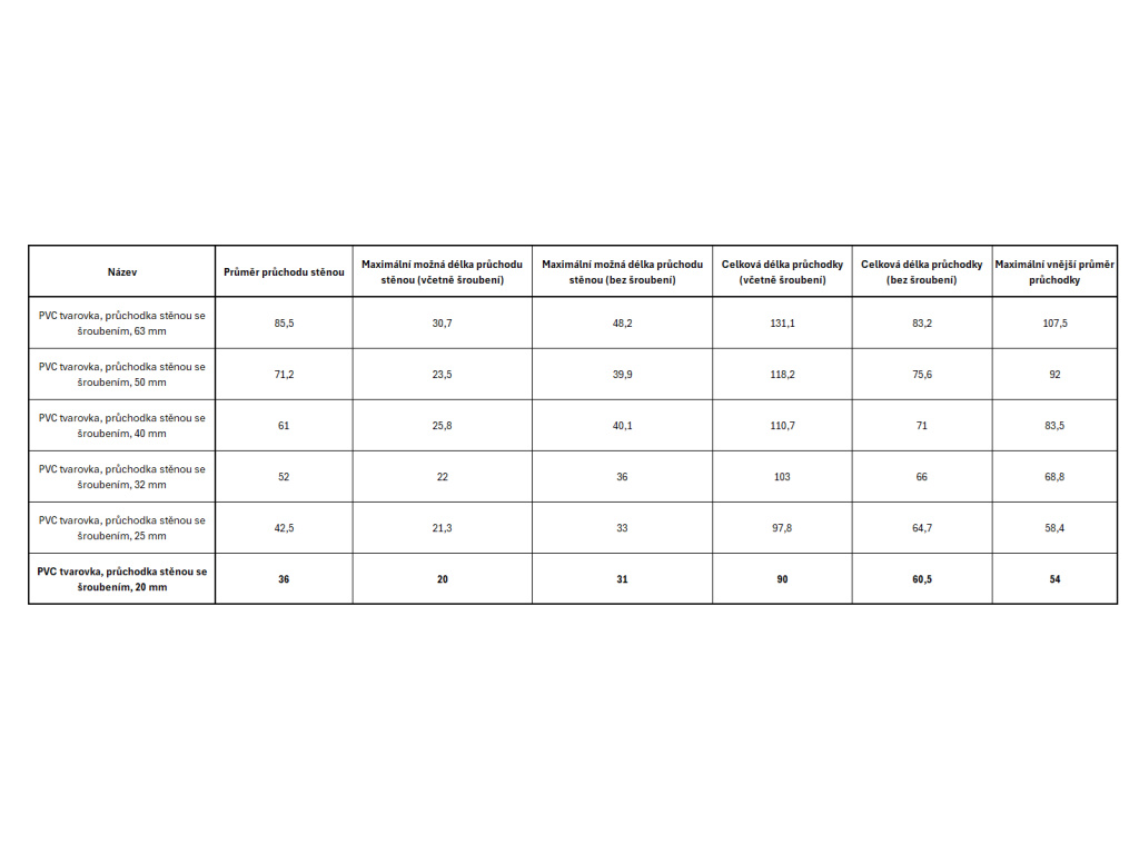 PVC tvarovka - průchodka stěnou se šroubením, 20 mm