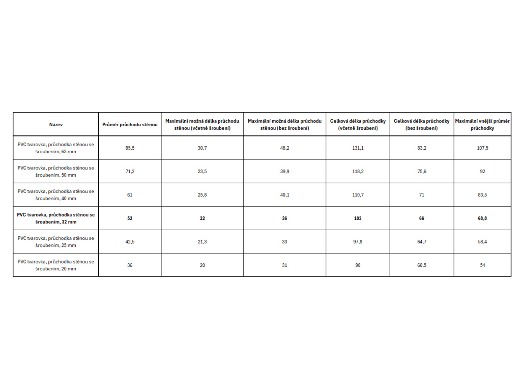 PVC tvarovka - průchodka stěnou se šroubením, 32 mm