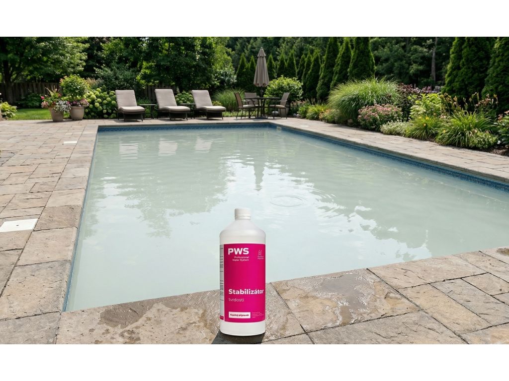 Přípravek PWS Stabilizátor tvrdosti po aplikaci do bazénové vody s vyššími koncentracemi vápníku, hořčíku, železa či manganu udržuje tyto ionty v rozpuštěné podobě a eliminuje tak riziko vzniku nežádoucích inkrustů na stěnách bazénu a bazénovém příslušenství či vzniku nežádoucího zabarvení vody.