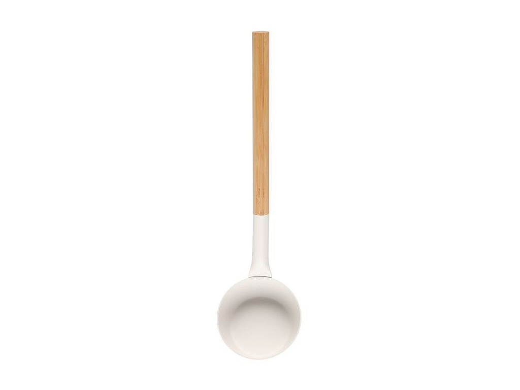Tato elegantní hliníková saunová naběračka je provedena v rafinované bílé barvě a přináší exkluzivní kousek od značky Rento s jedinečným designem a praktickými vlastnostmi. Přírodní rukojeť z tepelně upraveného bambusu dodává naběračce příjemný přírodní vzhled.