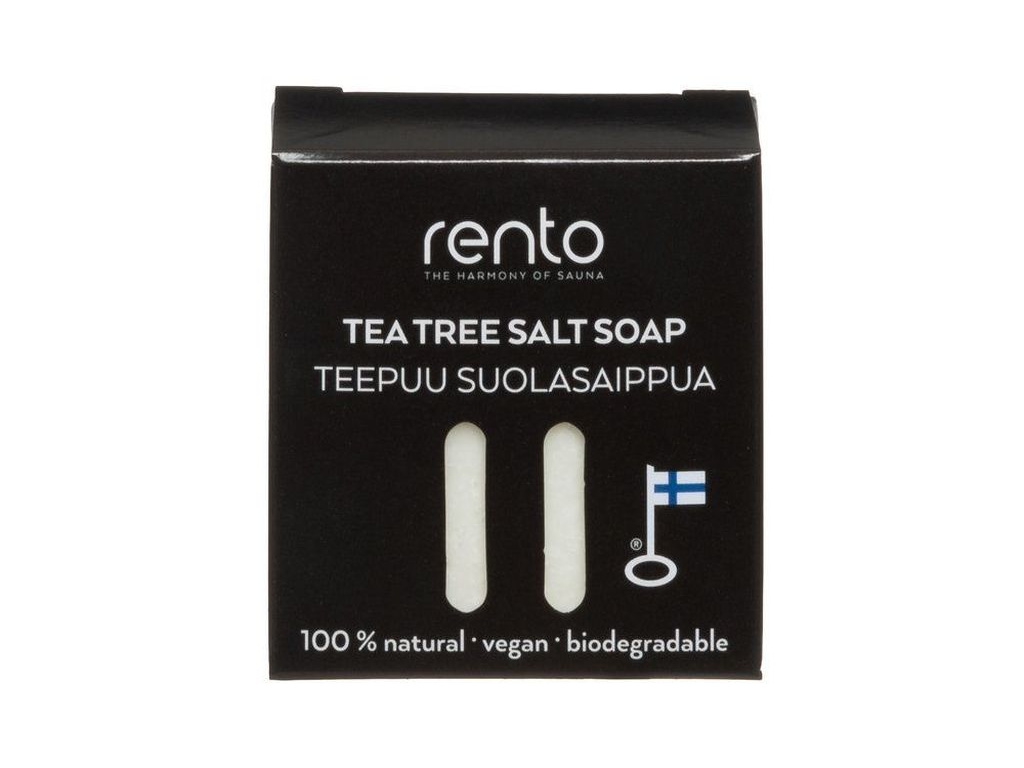 Solné mýdlo Tea Tree 50 g je přírodní a jemné ručně vyráběné mýdlo vhodné jak pro čištění obličeje, tak těla. Sůl má antiseptické vlastnosti a účinně čistí nečistoty a odstraňuje pachy potu. Solné mýdlo s obsahem tea tree oleje je zvláště vhodné pro mastnou a smíšenou pleť díky svým antibakteriálním vlastnostem, které pomáhají neutralizovat nečistoty. Toto mýdlo je neparfémované, což je ideální pro osoby citlivé na vůně, a neobsahuje alergenní složky. Solné mýdlo účinně zadržuje vlhkost, čímž hydratuje pokožku, zatímco minerály obsažené v soli podporují celkové zdraví pokožky. Mýdlo Rento obsahuje pouze přírodní ingredience a neobsahuje žádná umělá barviva, vůně ani chemikálie. Mýdlo si také uchovává glycerin, který přirozeně vzniká při studeném procesu výroby mýdla a má hydratační účinek na pokožku. Během výroby mýdla dochází k tzv. "superfattingu", kdy jsou některé oleje ponechány v mýdle, aby hýčkaly a vyživovaly pokožku. Bez přidaných vůní. Veganské a 100% biologicky odbouratelné.