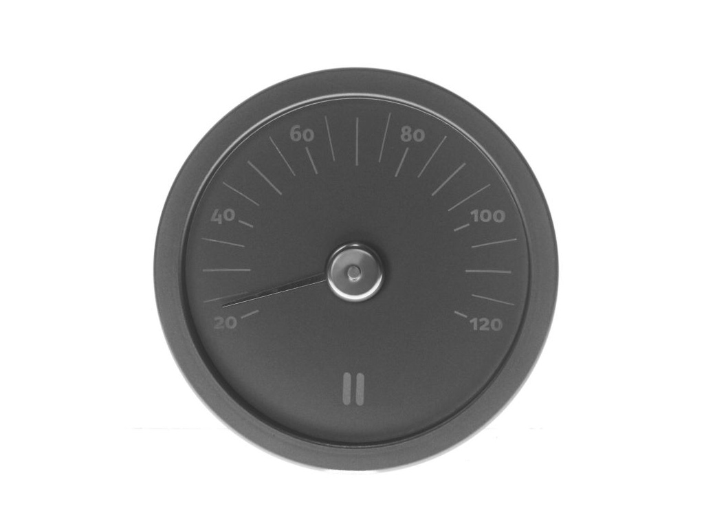 Kulatý teploměr do sauny, průměr 15 cm, hloubka 2 cm.