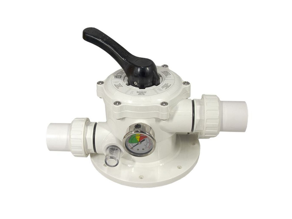 Šesticetný ventil ATECPOOL TOP s připojením do okruhu bazénové techneloogie pomocí koncovek o průměru 1,5" umožňuje pohodlné nastavení režimu chodu jednotky bazénové pískové filtrace a jeho operativní změny. Ventil je instalován nahoře na horní části tlakové nádoby pomocí osmi silných nerezových šroubů a díky tomu jsou celý ventil i jeho robustní ovládací rukojeť pohodlně přístupné pro jakoukoliv manipulaci. Možné provozní polohy nastavení šesticestného ventilu jsou na jeho horní části jasně a srozumitelně popsány. Změna pozice pákové rukojeti je snadná a provádí se sklopením rukojeti směrem dolů a následným pootočením do nové požadované pozice. Jednotlivá nastavení šesticestného ventilu - zpětný proplach filtračního lože, krátky proplach, sloužící ke stabilizaci pískové lože po zpětném proplachu, běžný filtrační režim, recirkulace, odtok bazénové vody do odpadu či uzavření šesticestného ventilu - pokrývají požadované veškeré provozní nároky úpravy a údržby bazénové vody v domácích bazénech či umělých koupalištích. Olejový manometr s hydraulickou ochranou je nedílnou součástí šesticestného ventilu a díky přehledné stupnici umožňuje kontrolu aktuálního tlaku ve filtračním loži. Okénko z průhledného plastu na odpadním výstupu z šesticestného ventilu umožňuje pohodlnou pohledovou kontrolu čistoty bazénové vody, vypouštěné v režimu zpětného proplachu ven z okruhu bazénové technologie.