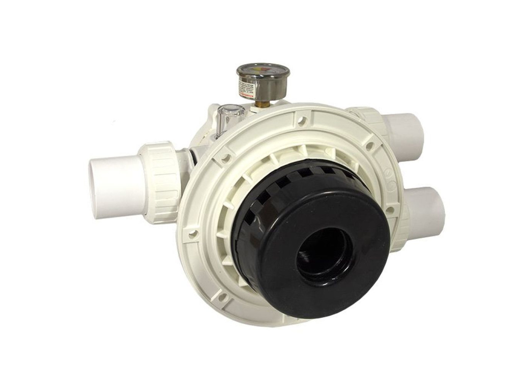 Šesticetný ventil ATECPOOL TOP s připojením do okruhu bazénové techneloogie pomocí koncovek o průměru 2" umožňuje pohodlné nastavení režimu chodu jednotky bazénové pískové filtrace a jeho operativní změny. Ventil je instalován nahoře na horní části tlakové nádoby pomocí osmi silných nerezových šroubů a díky tomu jsou celý ventil i jeho robustní ovládací rukojeť pohodlně přístupné pro jakoukoliv manipulaci. Možné provozní polohy nastavení šesticestného ventilu jsou na jeho horní části jasně a srozumitelně popsány. Změna pozice pákové rukojeti je snadná a provádí se sklopením rukojeti směrem dolů a následným pootočením do nové požadované pozice. Jednotlivá nastavení šesticestného ventilu - zpětný proplach filtračního lože, krátky proplach, sloužící ke stabilizaci pískové lože po zpětném proplachu, běžný filtrační režim, recirkulace, odtok bazénové vody do odpadu či uzavření šesticestného ventilu - pokrývají požadované veškeré provozní nároky úpravy a údržby bazénové vody v domácích bazénech či umělých koupalištích. Olejový manometr s hydraulickou ochranou je nedílnou součástí šesticestného ventilu a díky přehledné stupnici umožňuje kontrolu aktuálního tlaku ve filtračním loži. Okénko z průhledného plastu na odpadním výstupu z šesticestného ventilu umožňuje pohodlnou pohledovou kontrolu čistoty bazénové vody, vypouštěné v režimu zpětného proplachu ven z okruhu bazénové technologie.