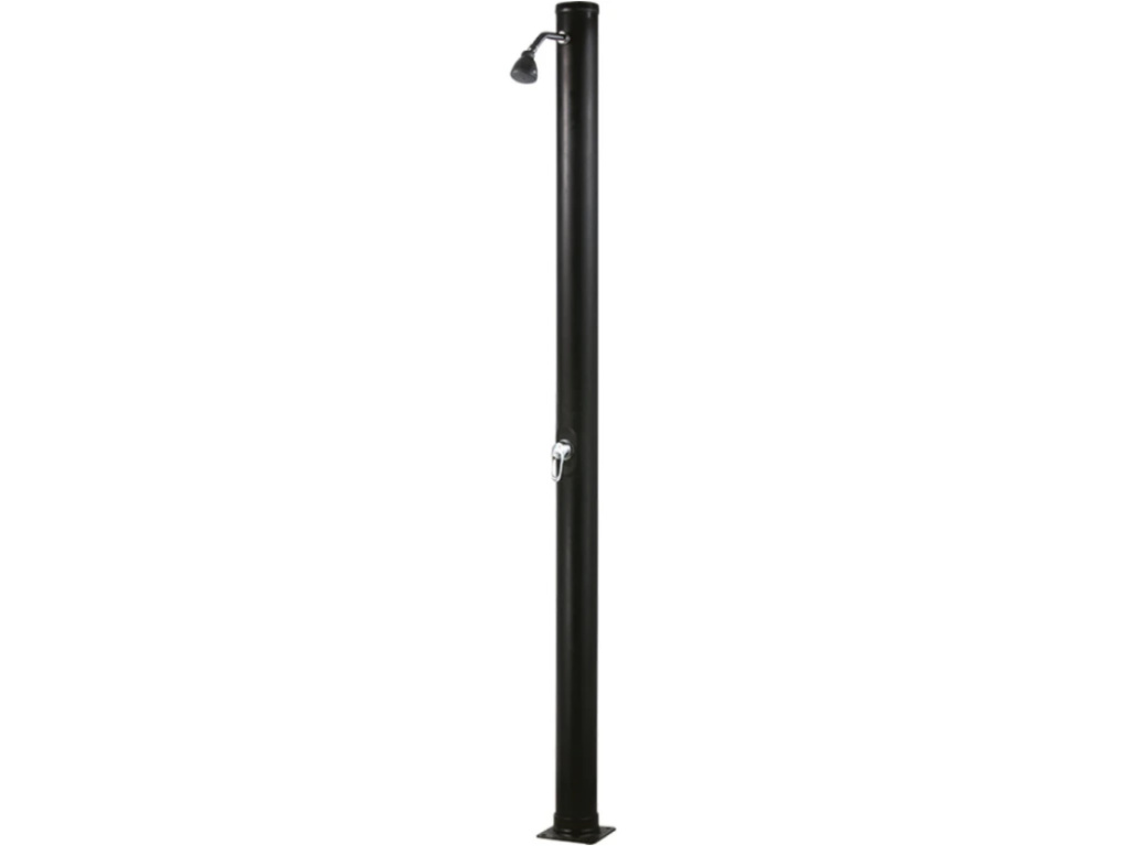 Bazénová solární sprcha TROPIC je tou pravou volbou pro očistu těla v letních dnech při jakékoliv činnosti na prosluněné zahradě, ať už se vášnivě věnujete zahradničení či jen tak lenošíte pod horkými slunečnímu paprsky. Jako všechny venkovní solární sprchy je i bazénová sprcha TROPIC velkým pomocníkem při údržbě optimální kvality bazénové vody v domácím zahradním bazénu, protože v případě jejího pravidelného používání před vstupem do bazénu významným způsobem eliminujete množství nežádoucích nečistot, vnášených do bazénové vody na pokožce koupajících se. V těle solární sprchy, vyrobeném z kvalitního černého plastu, jsou umístěny plastové rozvody vody, fungující jako zásobník teplé vody pro tělesnou očistu. Díky černé barvě dokáže materiál, ze kterého je sprcha vyrobena, maximálním způsobem zachycovat energii slunečního záření a ohřívat vodu v plastových rozvodech. V dolní části sprchy je umístěna vstupní napouštěcí koncovka, umožňující připojení solární sprchy k vodovodní síti přes hadicovou rychlospojku a zahradní hadici. Plastové trubky uvnitř těla solární sprchy, ve kterých dochází k ohřevu vody, vedou plnící vodu vzhůru ke sprchové růžici o průměru 7 cm, vyrobené z kombinace kovu a plastu s velkým množstvím drobných otvorů. K regulaci teploty vody pro sprchování slouží páková baterie, umístěná zhruba v polovině výšky solární sprchy.