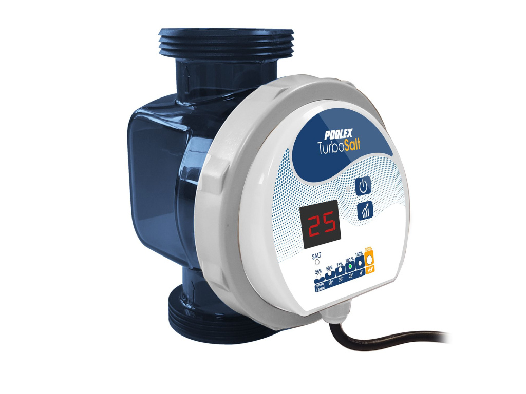 Dostupné pro bazény do 20m3. Turbo Salt je dodáván s připojením 50 mm (1' 1/2) a adaptéry 32/38 mm. Díky jeho upevnění na stěnu nebo podlahu se tento elektrolyzér přizpůsobí všem typům filtrace a jeho ultra-kompaktní velikost umožňuje instalaci i v nejmenších technických místnostech.