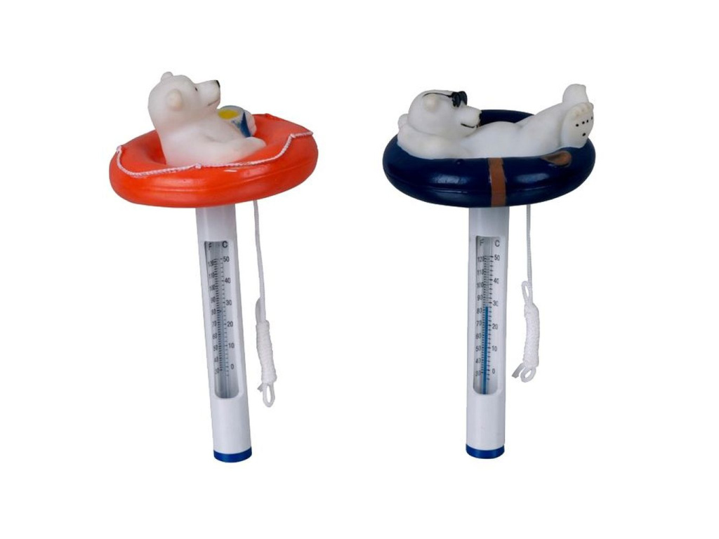 Praktický plovoucí odolný teploměr pro měření teploty bazénové vody. Díky plastového plováku teploměr v bazénu vždy na hladině spolehlivě najdete. Pomocí provázku z umělého vlákna teploměr v bazénu spolehlivě upevníte. Dobře čitelná teplotní stupnice se skleněnou trubičkou s kontrastní modrou kapalinou uprostřed.