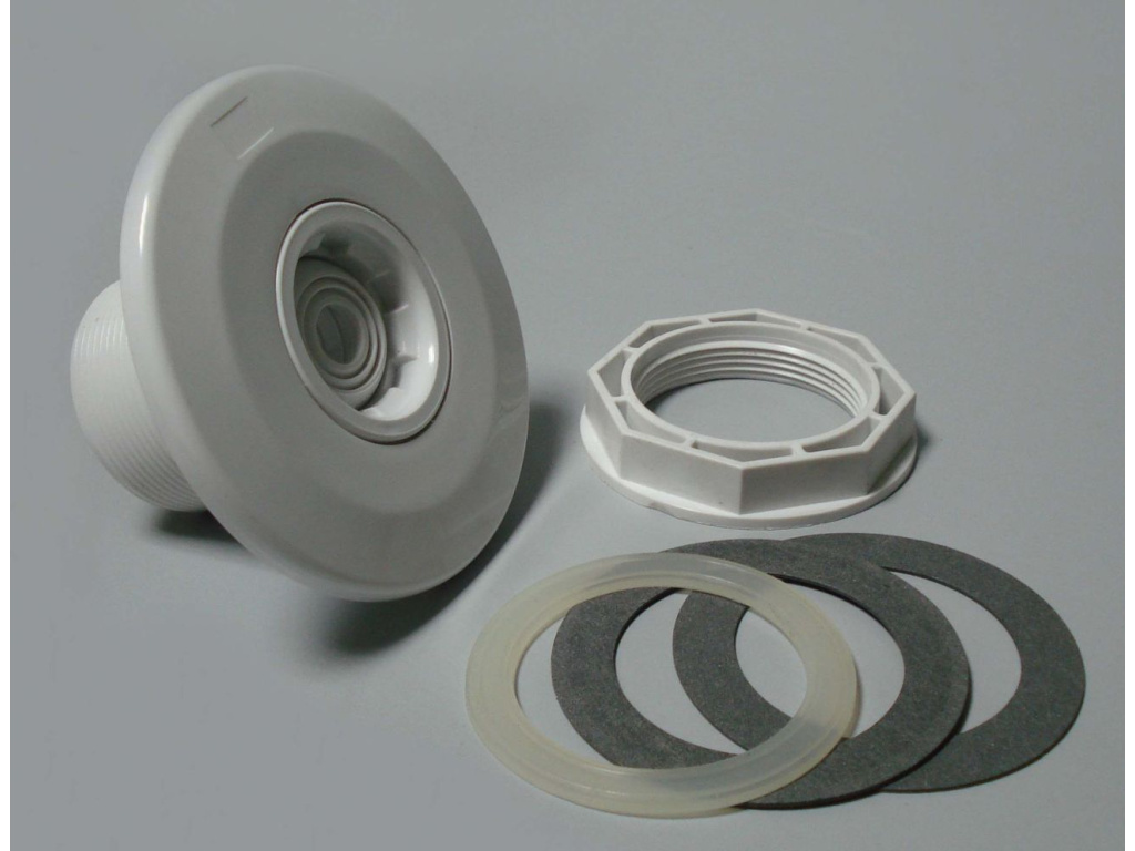 Plochá cirkulační tryska vyrobena z bílého plastu ABS vhodná pro foliové a prefabrikované bazény. Plochá bazénová tryska HANSCRAFT MULTIFLOW je vyrobena z bílého ABS plastu a je určena především pro foliové nebo prefabrikované bazény (Betonové bazény, Polypropylenové bazény, Plastové bazény, Laminátové bazény). Tryska MULTIFLOW se dodává včetně silikonového těsnění a dělících segmentů. Připojuje se pomocí vnitřního lepení o 50mm průměru na klasické bazénové PVC potrubí. Vnější strana obsahuje závit 2“ na který se nasadí převlečená matice, kterou trysku a její těsnění stáhneme. Tryska MULTIFLOW se na bazén osazuje z protější strany kde je instalován skimmer a cca 10cm pod vodní hladinu, což by měla být spodní strana skimmeru. Na trysce je z vnitřní strany bazénu vytvořen i závit pro zátku trysky, nebo pro připojení masážní hadice. Je plně regulovatelná, tedy můžete nastavit směr proudění vody, a na oku trysky (středová kulička) lze regulovat i požadovanou rychlost průtoku. Bazénové trysky slouží k oběhu – cirkulaci vody v bazénu, kdy se skimmerem voda z hladiny nasaje, dále pokračuje do filtrace přes cirkulační čerpadlo a zpět se vrací čistá, právě cirkulační tryskou.