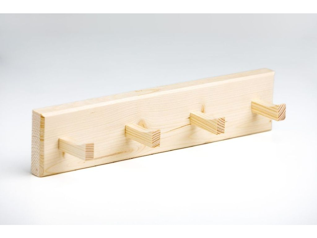 Dřevěný věšák do sauny se čtyřmi háčky, severský smrk